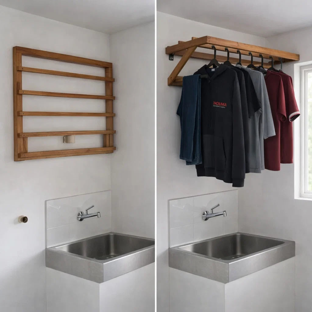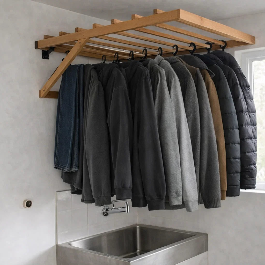 Transformez en quelques secondes le moindre coin au-dessus de votre machine à laver en un espace de rangement astucieux ! Un étendoir à linge mural en bois, élégant, pratique et peu encombrant, qui s’intègre parfaitement à votre décoration intérieure.