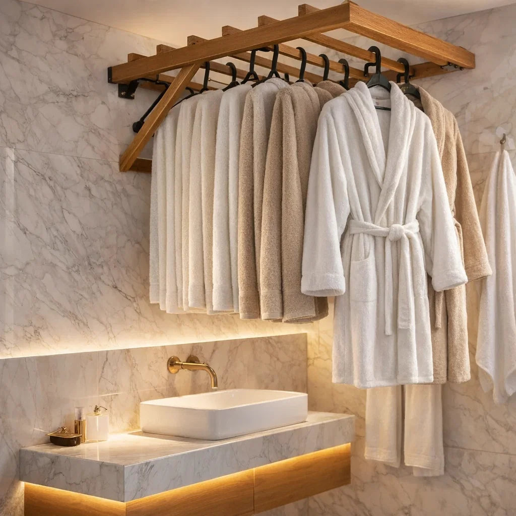 Il permet de ranger soigneusement les serviettes et les baignoires et de gagner de la place, transformant votre salle de bain en un coin bien rangé avec une ambiance spa sophistiquée.